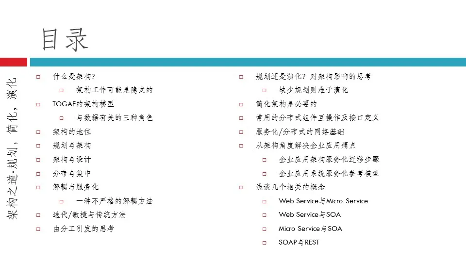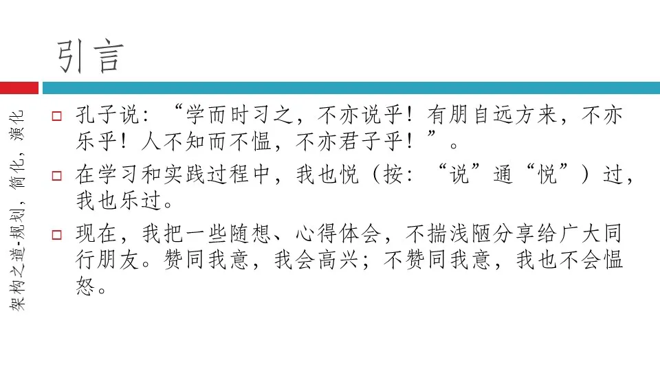 架构是客观存在的,不管我们是否有意识地考虑它。架构不是孤立存在的,它是在具体的上下文环境中,为达到明确的目标而存在的。架构不是“屠龙术”。