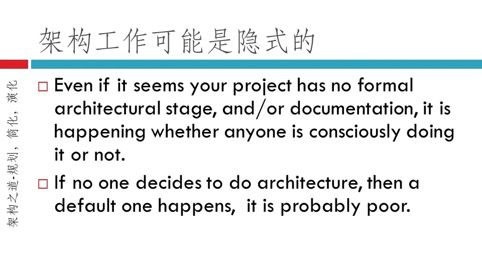架构工作,不管有没有架构师被指派,其实都是会做的,只是有些时候,架构工作被做了,但没有人意识到。