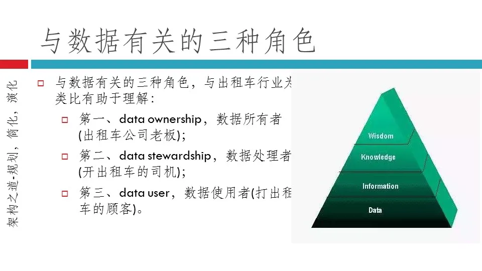 很多时候,IT部门、以及IT部门的一些人,常常把自己当成数据的所有者,导致认为地制造了藩篱,阻碍数据的共享及访问。其实,IT通常应该只是“司机”的角色。角色错位了,想做事正确?难于缘木求鱼。