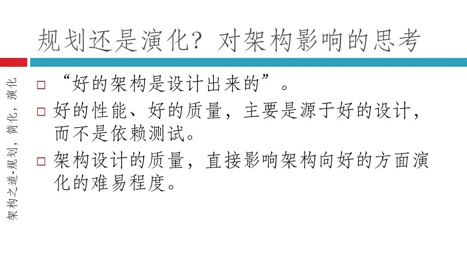 单靠演化,即使能使架构越来越优化,也可能需要很长的周期,而对于产品或者项目,时间这个约束条件往往是苛刻的。