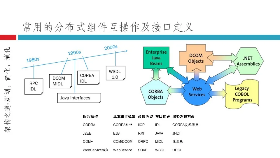 分布式的计算模型是以RPC为基础展开的,为解决应用系统间的集成和互操作,为支持语言和平台独立性,经历了几十年的发展历程,从RPC到COM/COM+,以及CORBA和JavaBeans/EJB,进而发展到Web services,实现了跨平台及语言无关。