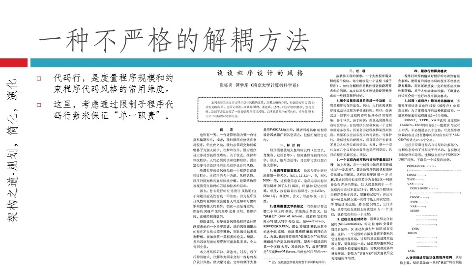 对于企业应用架构向“微”服务演化,解耦是基础。为此,在程序实现时,“单一职责”原则需要尊循。即使不走服务化道路,降低耦合度也是好的。