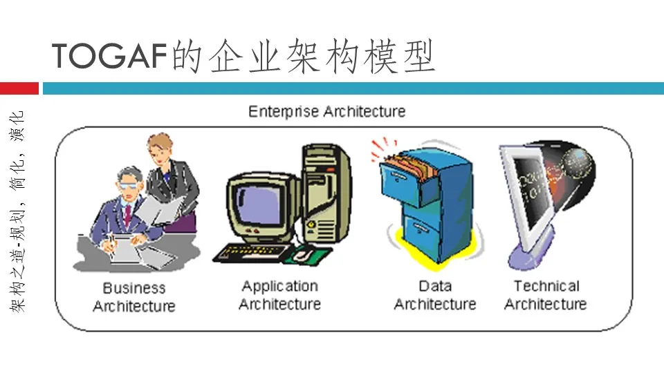 As shown in the figure, TOGAF divides an enterprise architecture into four categories, as follows: