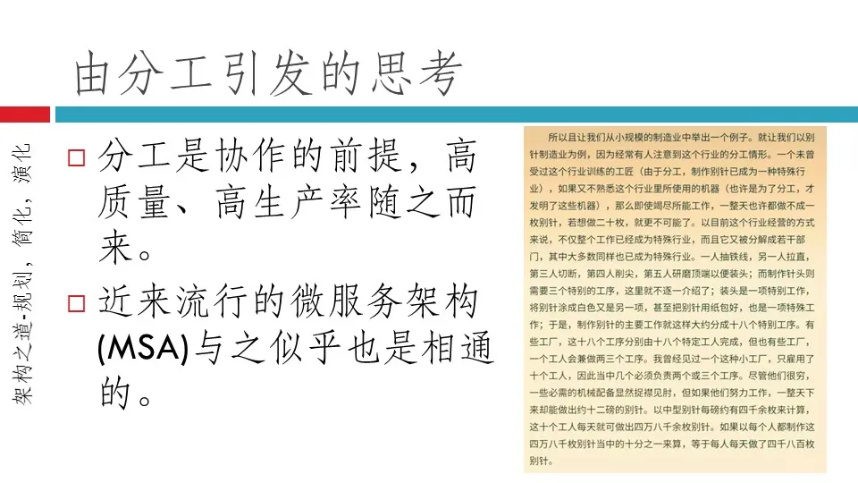 从这个对制造别针的分工的描述,你会体会到并发现,很多基本道理是相通的,不论对于生产制造还是软件开发。这就是道法自然。