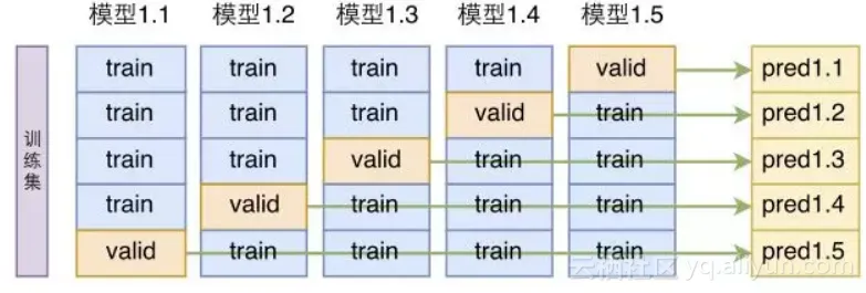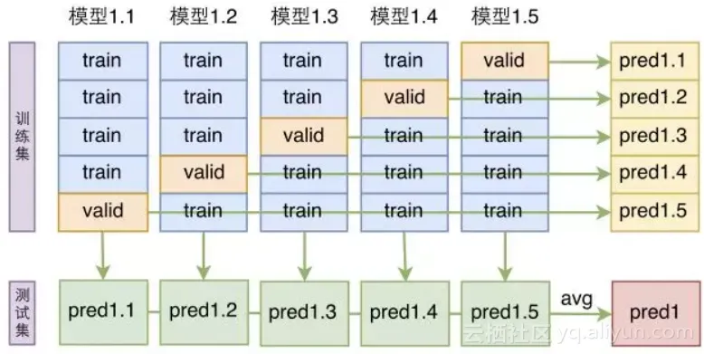 这样一来,我们就得到了同一个模型的 k 个不同训练结果,然后将这些结果平均一下,就是模型融合了: