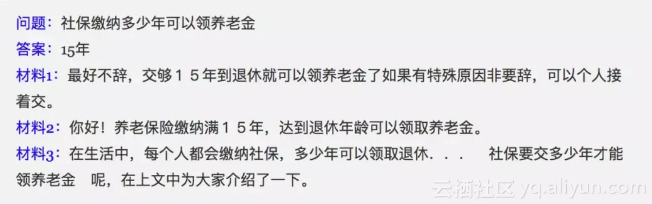 不管是 WebQA 还是 SOGOU,所提供的语料都是“一个问题 + 多段材料 + 一个答案”的形式,并没有特别指明答案出现在哪段材料的哪个位置。