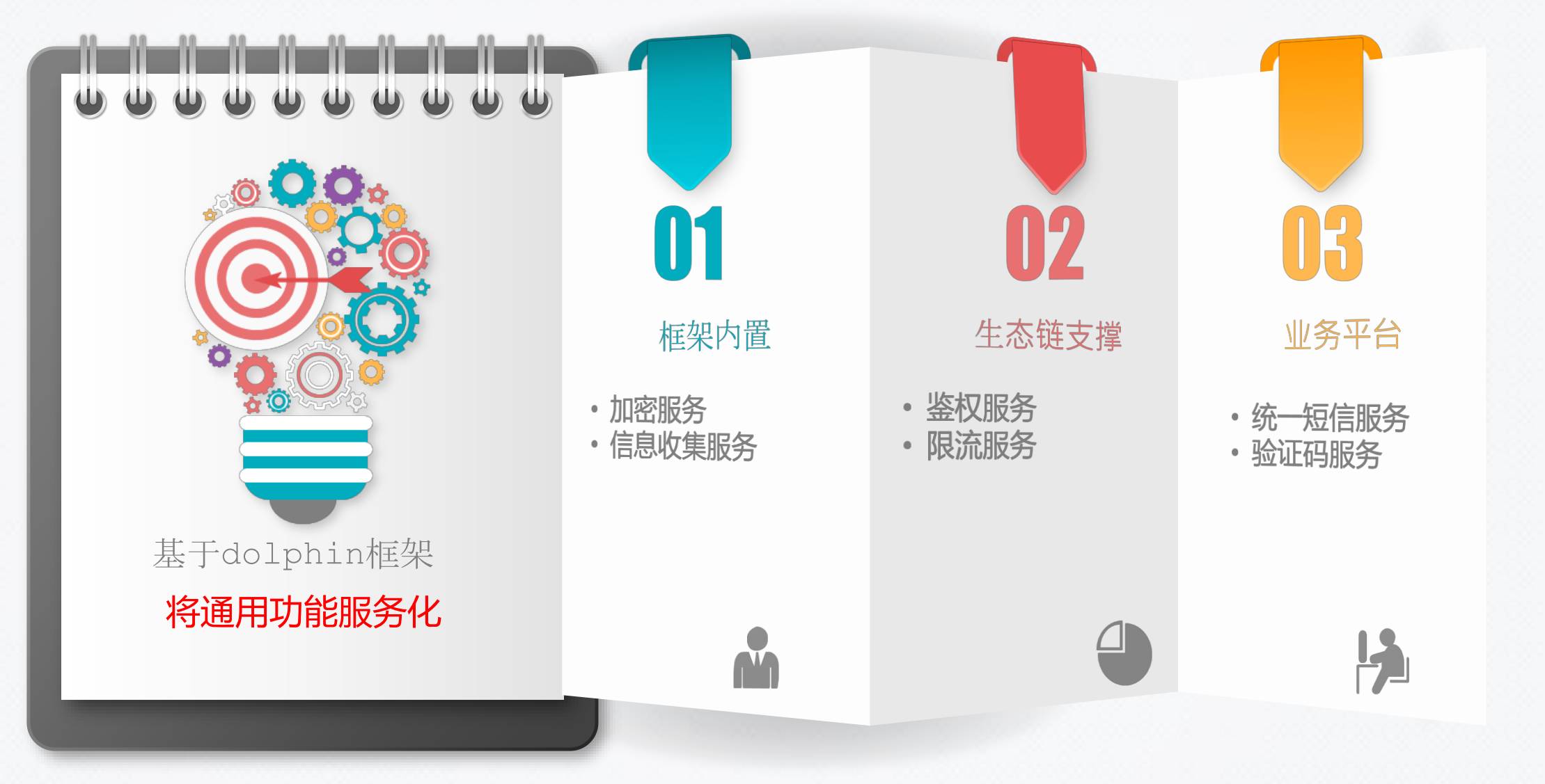 我们的愿景——要打造业界一流的微服务框架。Dolphin要打通整个业务的全流程,这个可能是跟其他微服务框架特别大的不同,这也是造成我们最后技术选型的一个重要的基石。