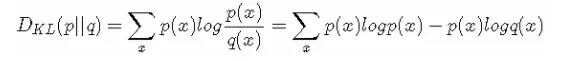 所以有:DKL(p||q)=H(p,q)−H(p)(当用非真实分布 q(x) 得到的平均码长比真实分布 p(x) 得到的平均码长多出的比特数就是相对熵)