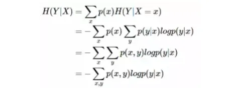 条件熵 H(Y|X)表示在已知随机变量 X 的条件下随机变量 Y 的不确定性。条件熵 H(Y|X)定义为 X 给定条件下 Y 的条件概率分布的熵对 X 的数学期望: