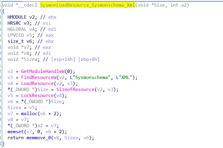 接下来会加载内置在exe 内的Sysmonschema.xml