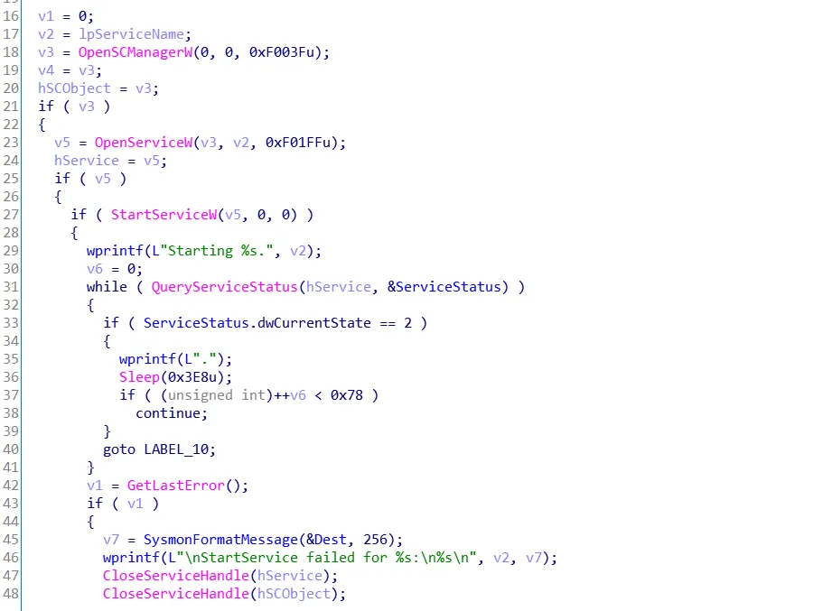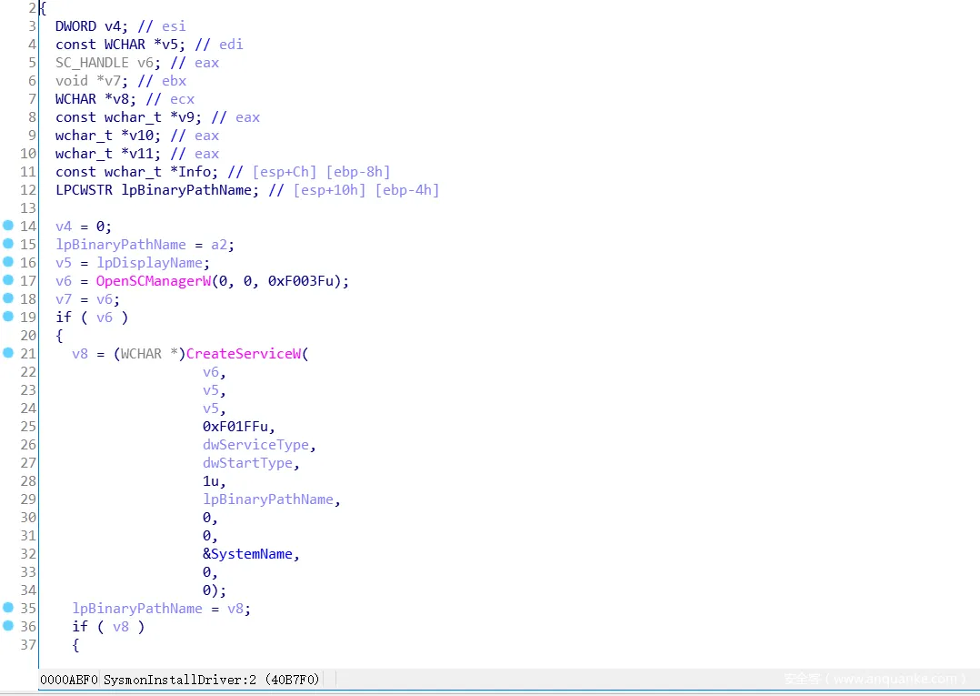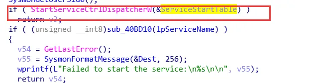 以上过程是大致的安装与启动的过程,接下来就是执行Sysmon服务的SysmonServiceMain例程。
