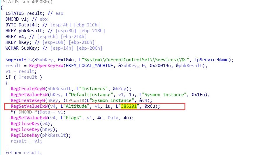 Sysmon还会设置minifilter驱动的Altitude值为385201