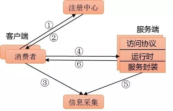 其操作流程如下:客户端从注册中心获取注册服务的列表信息,缓存到本地内存中方便快速查询;客户端根据既定的负载均衡策略选取一个服务结点发起服务调用,服务端接收客户端调用请求;整个过程由信息采集模块采集调用信息,发送到流处理引擎中进行进一步的处理。整个流程如下图所示: