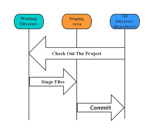 由文件的三种状态,我们引出文件流转的三个工作区域:本地仓库、Git工作目录、暂存区域。