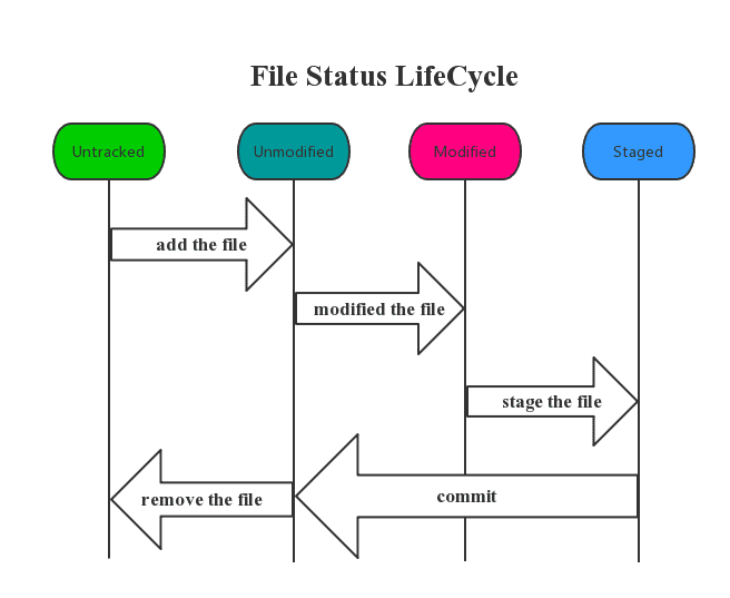 - 已跟踪是指本来就被纳入版本控制管理的文件,在上次快照中有它们的记录,工作一段时间后,它们的状态可能是未更新,已修改或者已放入暂存区。