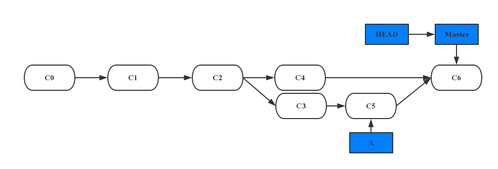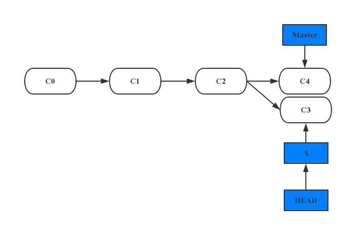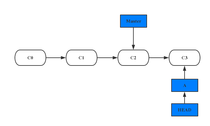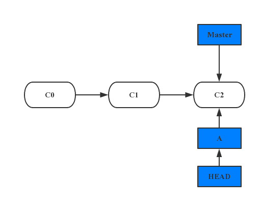 其中C0、C1、C2为提交的对象。现在你要开发一个代号为A的新需求,那么你可以新建一个分支并同时切换到那个分支上工作。那么Git又是怎么知道当前在哪一个分支上呢? 也很简单,它有一个名为HEAD的特殊指针。在 Git 中,它是一个指针,指向当前所在的本地分支。