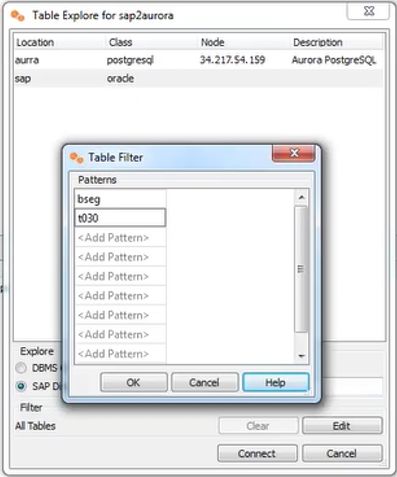 假设我们需要获取SAP系统中业务代码为BSEG(财务凭证行项目)和T030(科目自动记账定义)的数据,我们可以直接在选取表的时候按业务代码过滤找到需要的表