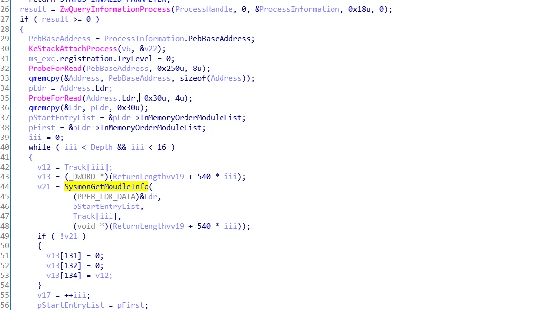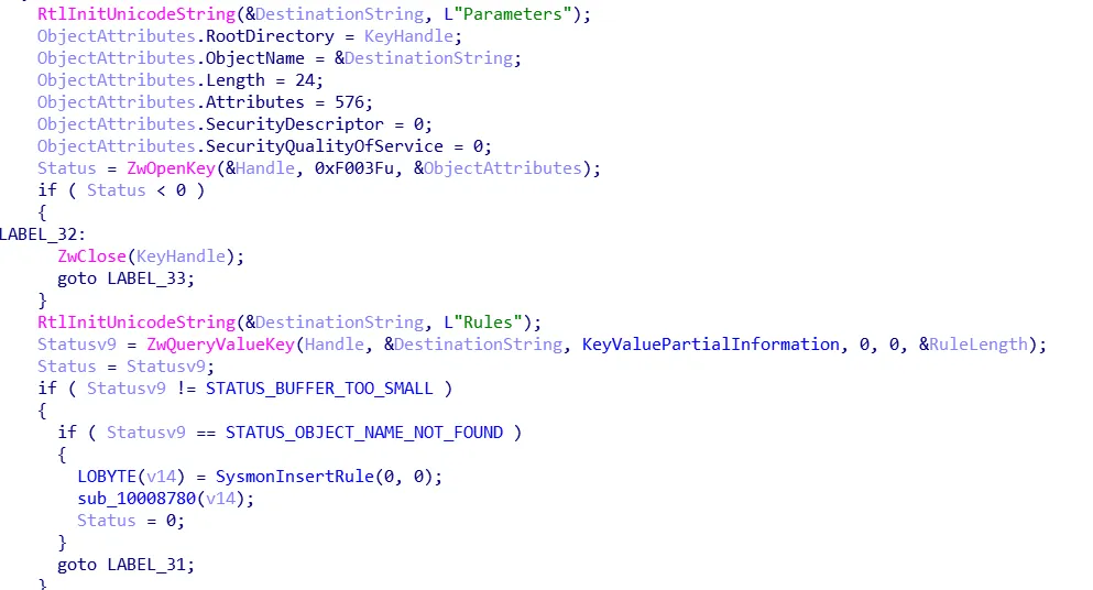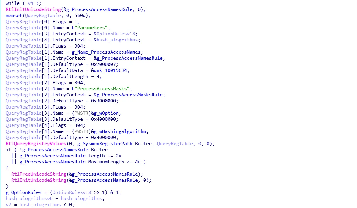 RtlQueryRegistryValues(0, g_SysmonRegisterPath.Buffer, QueryRegTable, 0, 0);