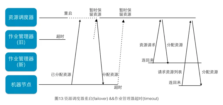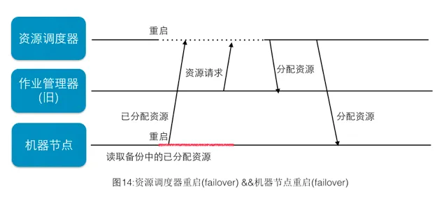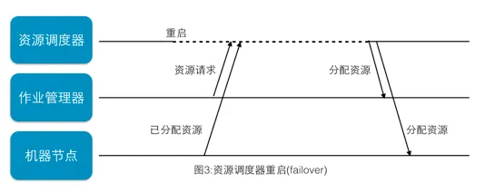 当FuxiMaster和AM failover时,FuxiMaster会等待重启的AM发送全量的request以及tubo发送全量的cap来恢复资源