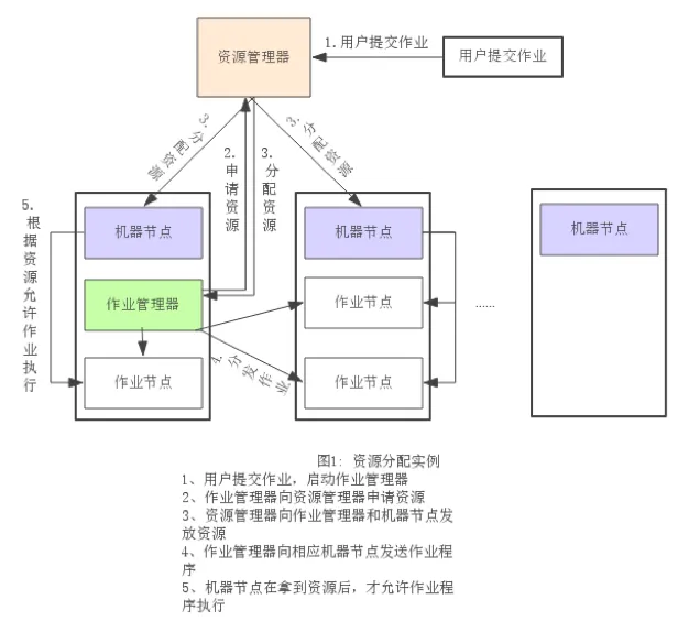 FuxiMaster和Yarn非常相似,定位于分布式系统中资源管理与分配的角色:一个典型的资源分配流程图如下所示:作为调度器,目前FuxiMaster支持的功能主要有: