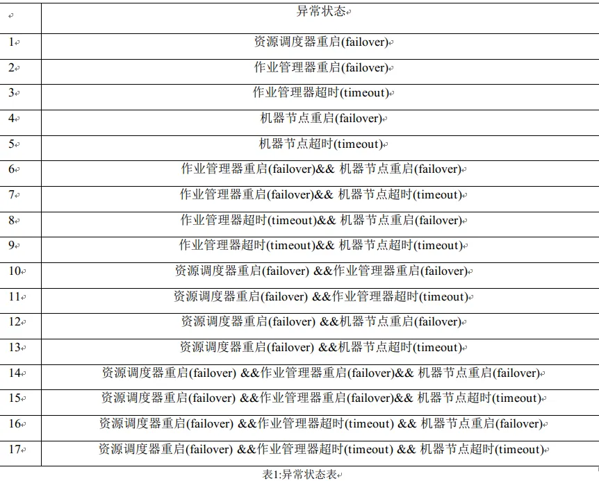 系统中存在FuxiMaster\Tubo\AM三个角色,根据timeout和failover的排列组合,总共有下述17种异常场景: