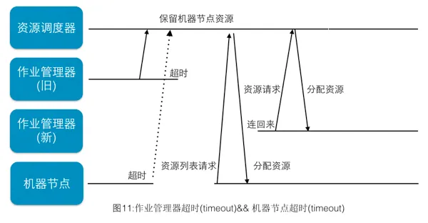 当AM timeout时,在超时时间内FuxiMaster不做动作;在超时时间外FuxiMaster会为AM找一台新的机器重新调度新的AM,并完成failover