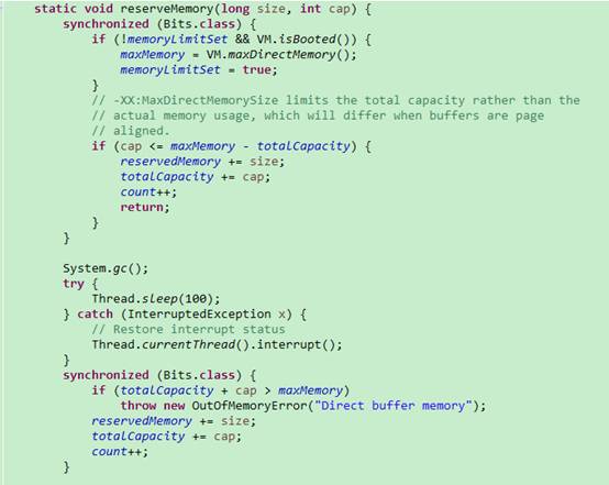 通过前面分析,一直FGC的原因是DirectByteBuffer泄露,导致一直调用system.gc,下面将轮到本文的主角登场,堆外buffer。
