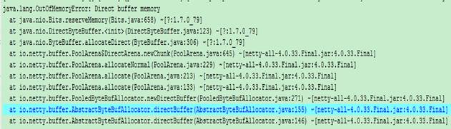 通过日志发现使用的是netty的buffer pool,基本上可以确定是某个地方在拿到DirectByteBuffer,没有归还导致的堆外内存泄露。