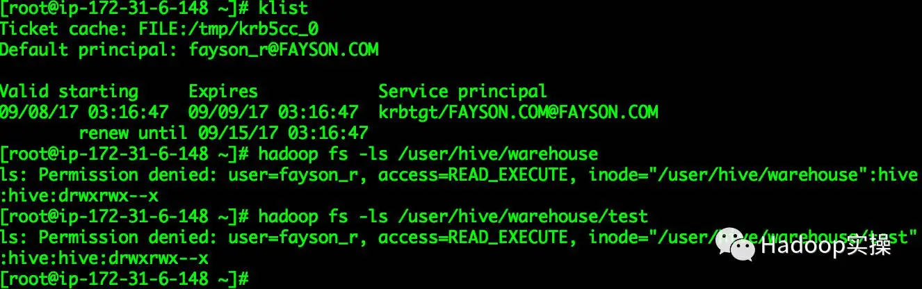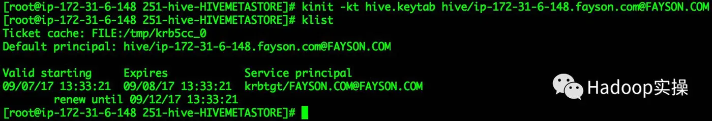 [root@ip-172-31-6-148 251-hive-HIVEMETASTORE]# kinit -kt hive.keytab hive/ip-172-31-6-148.fayson.com@FAYSON.COM