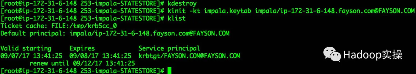 [root@ip-172-31-6-148 253-impala-STATESTORE]# kinit -kt impala.keytab impala/ip-172-31-6-148.fayson.com@FAYSON.COM