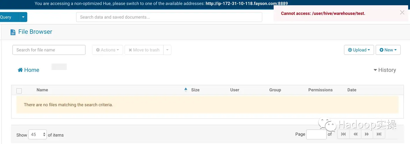 不能通过File Brwoser浏览test表的数据目录/user/hive/warehouse/test