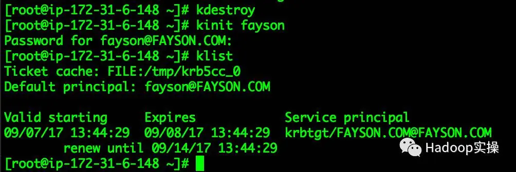 [root@ip-172-31-6-148 ~]# kinit fayson