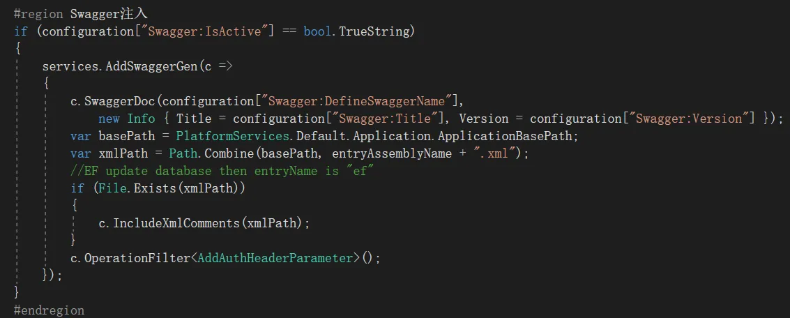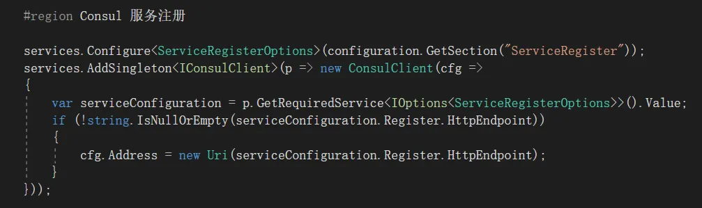 1、在项目里面的 Startup.cs 文件里面写上我们的服务注册,我把注册的信息放在了appsetting.json 文件里头了。