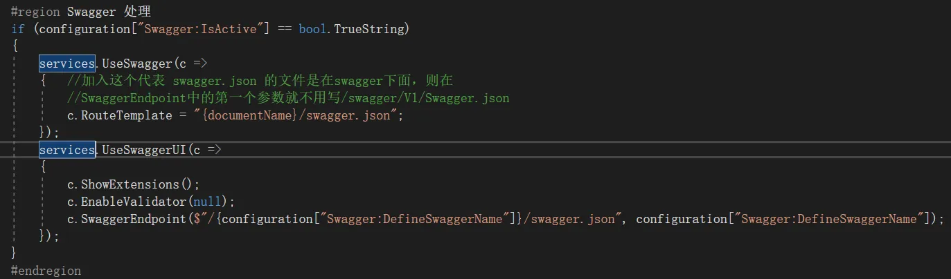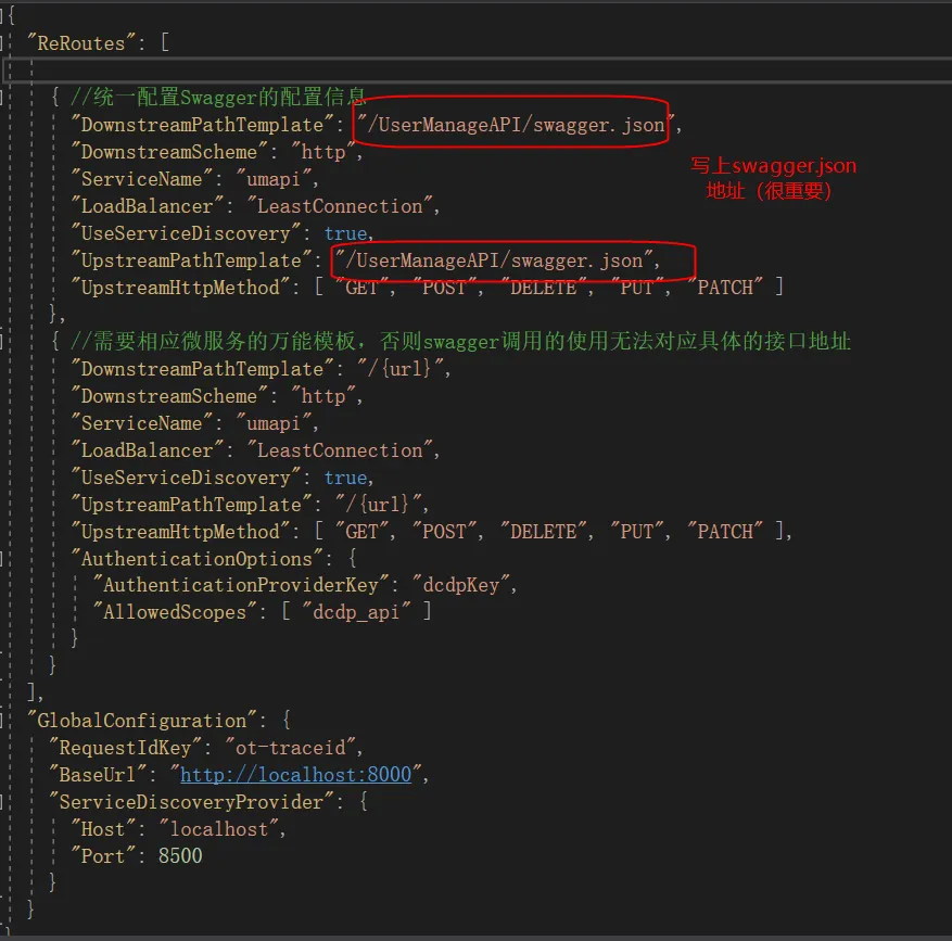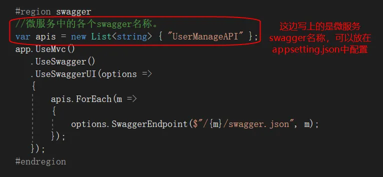 我把swagger的微服务信息放在appsetting.json 里面了。