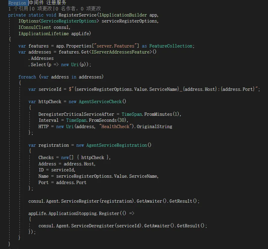 统一在网关中配置多个微服务的swagger,需要用到服务注册和发现,当然ocelot里面以及拥有了服务发现,因此需要把asp.net core项目先注册到consul中。