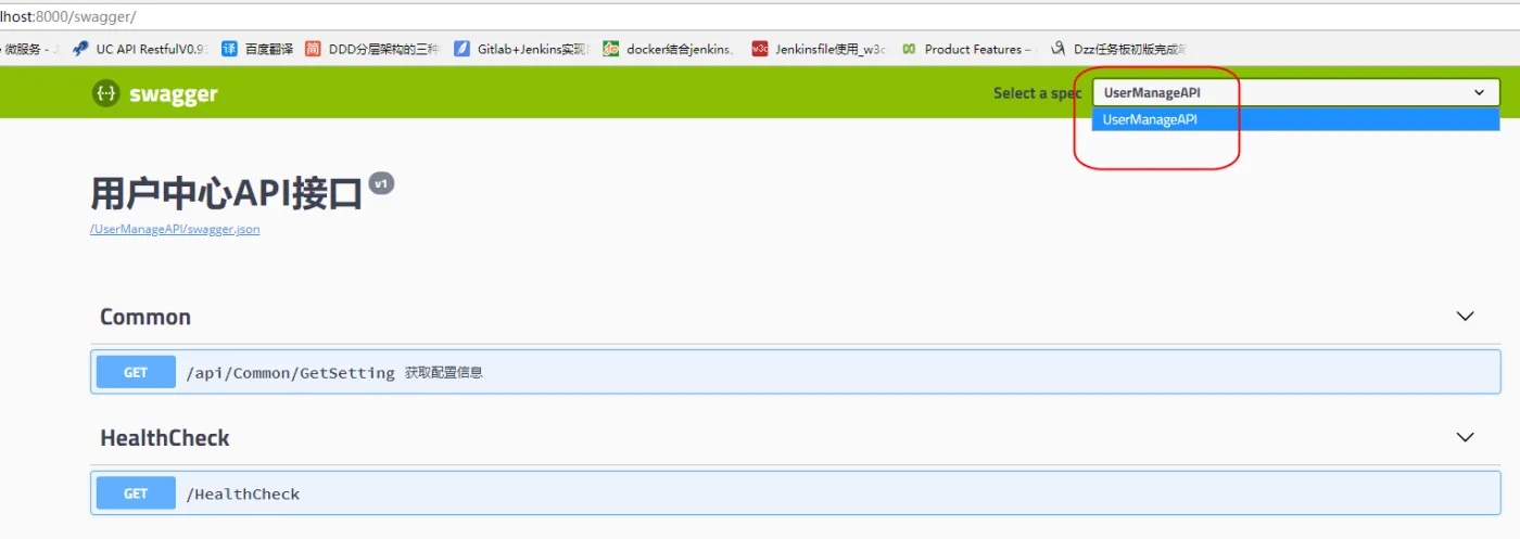 然后打开apigateway的swagger项目,可以看到userapi的接口,至此完成配置。