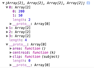 通过d3.geom.polygon(dataset1)转换后的数据data1,主要是给数据加了3个方法,如图所示: