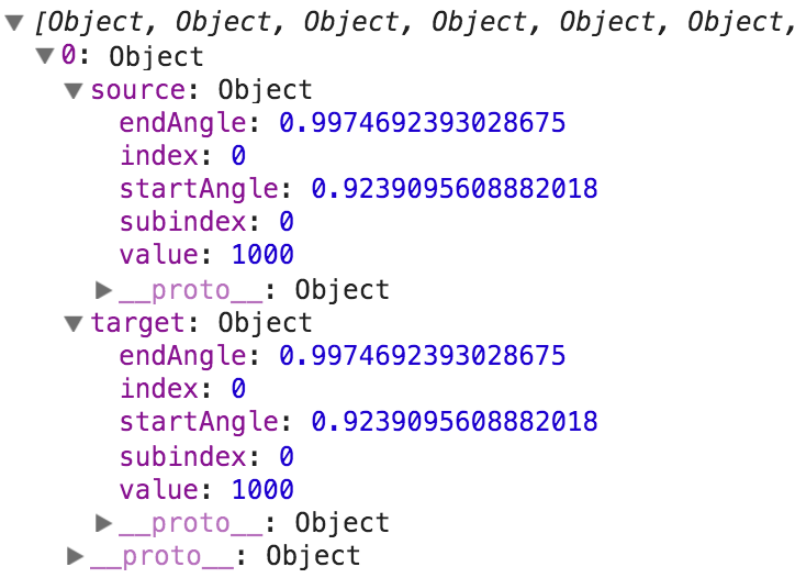通过弦布局转换数据后,数据被转换成如下形式: