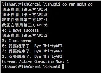 其实,最致命的问题是采用缓存通道并不能真正的结束所有该退出的goroutine,想一想,如果在thirtyAPI中继续调用其他API怎么办?我们并不能在预知有多少个goroutine在运行!!!