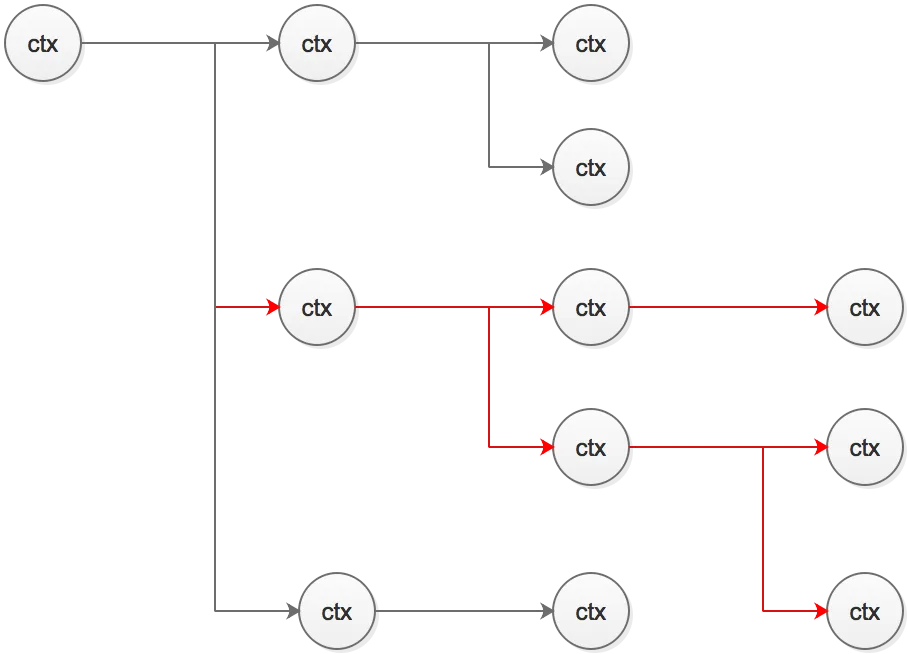 如上图,很多时候,尤其是分布式架构环境中,一个请求到达服务端后,会被拆分为若干个请求转发至相关的服务单元处理,如果一个服务单元返回结束信息(通常是错误造成的),其他服务单元都应该及时结束该请求的处理,以避免资源浪费在无意义的请求处理上。