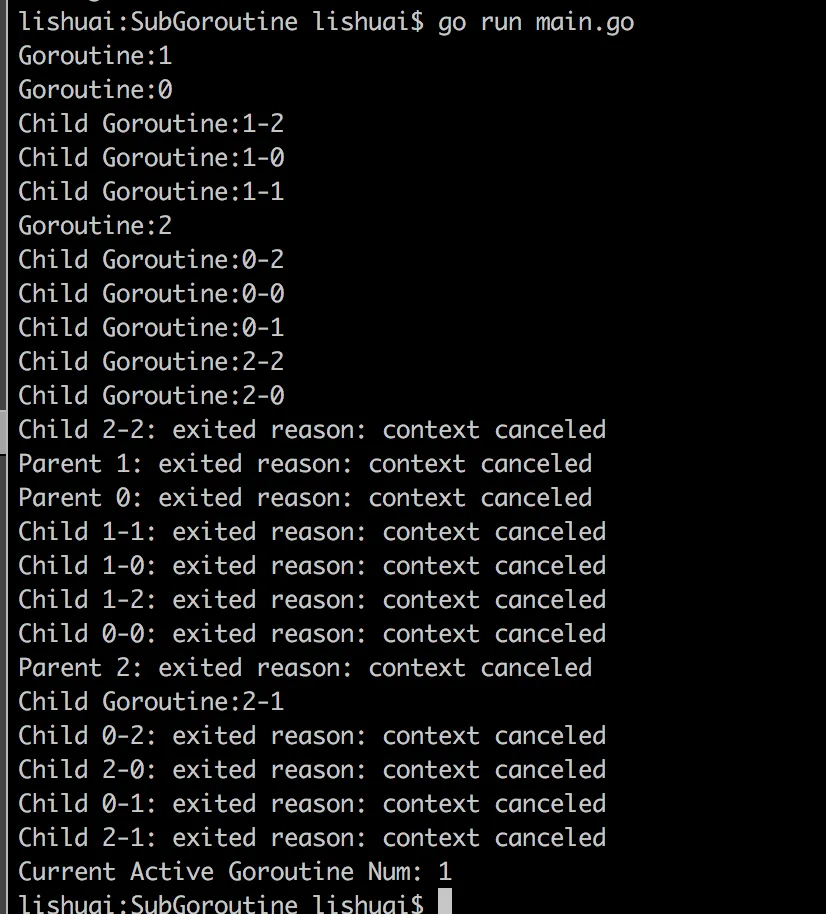 fmt.Printf("%d: 我要结束了,Error信息: %s\n", num, ctx.Err())
