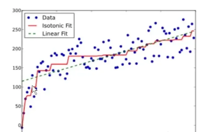 它可被视为顺序限制约束的最小二乘问题。基本上保序回归是最适合原始数据点的单调函数。