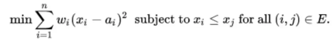 相对于x1≤x2≤...≤xn的完全顺序,其中wi是正的权重。由此产生的函数称为保序回归。
