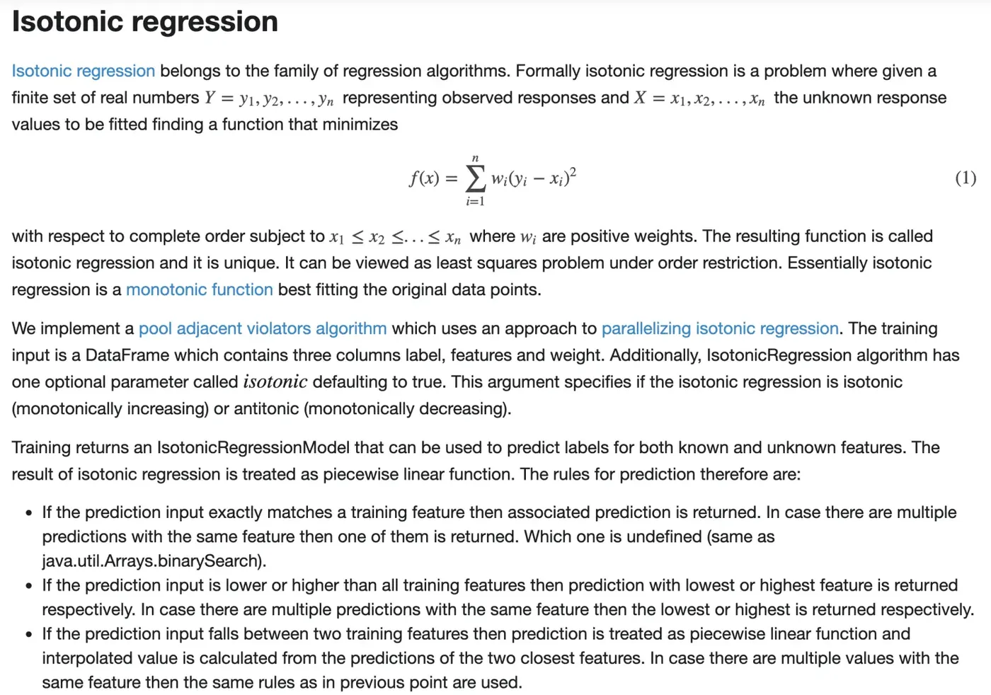此外,IsotonicRegression算法有一个称为等渗默认为true的可选参数。该论证指定等渗回归是等渗的(单调递增的)还是反单调的(单调递减的)。