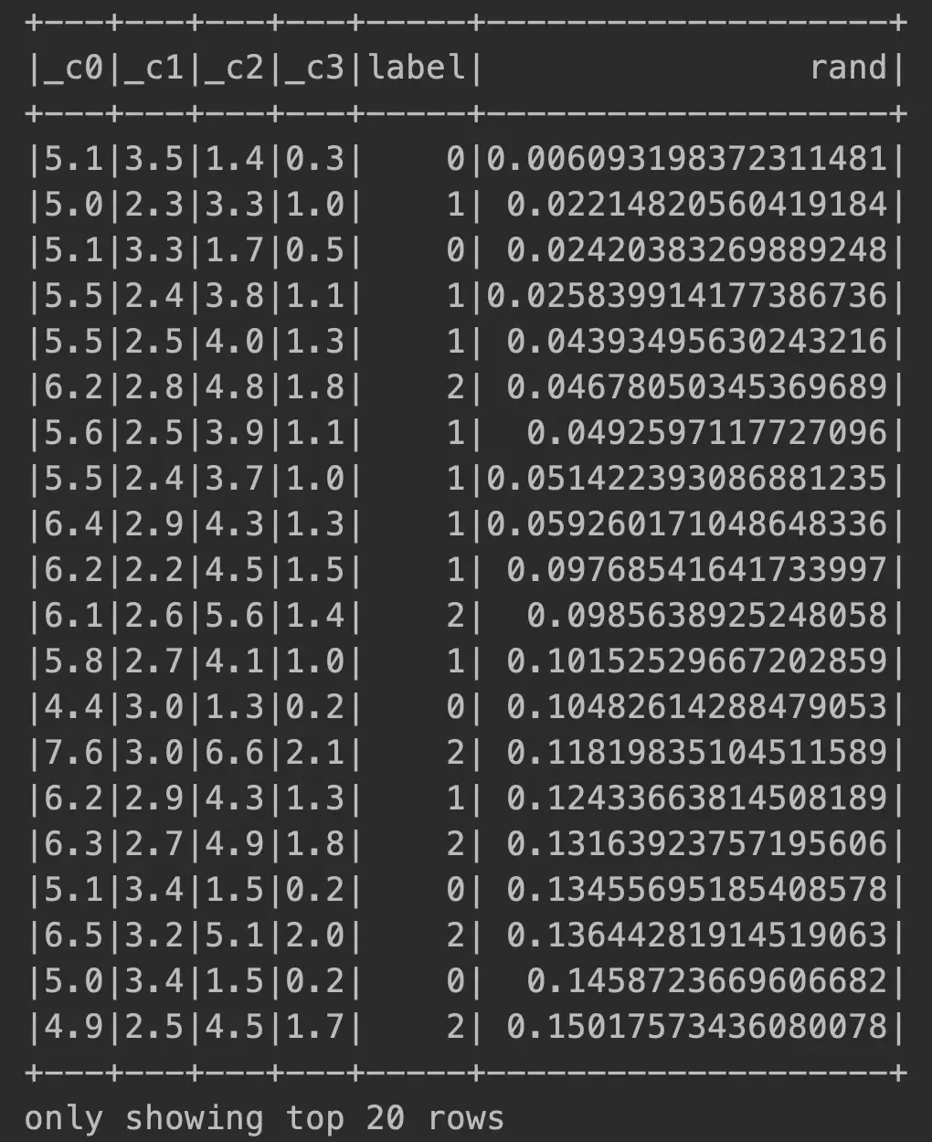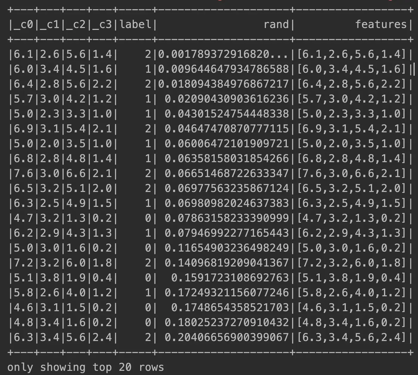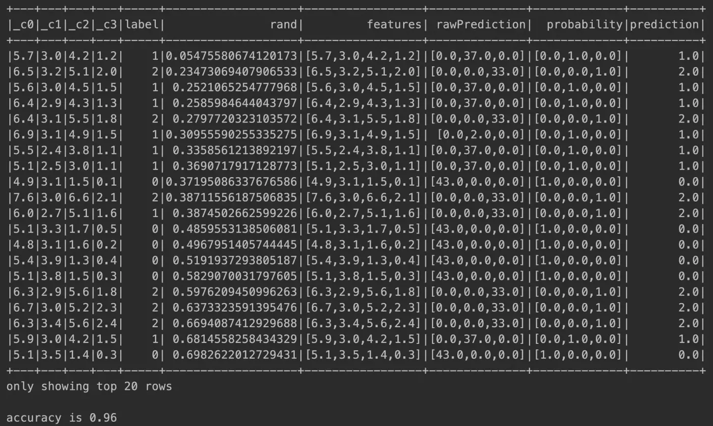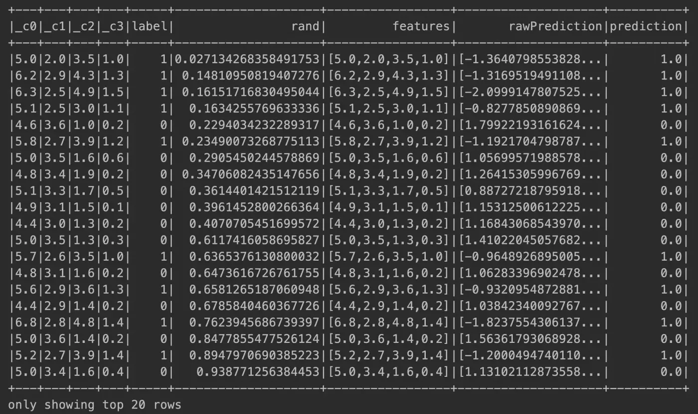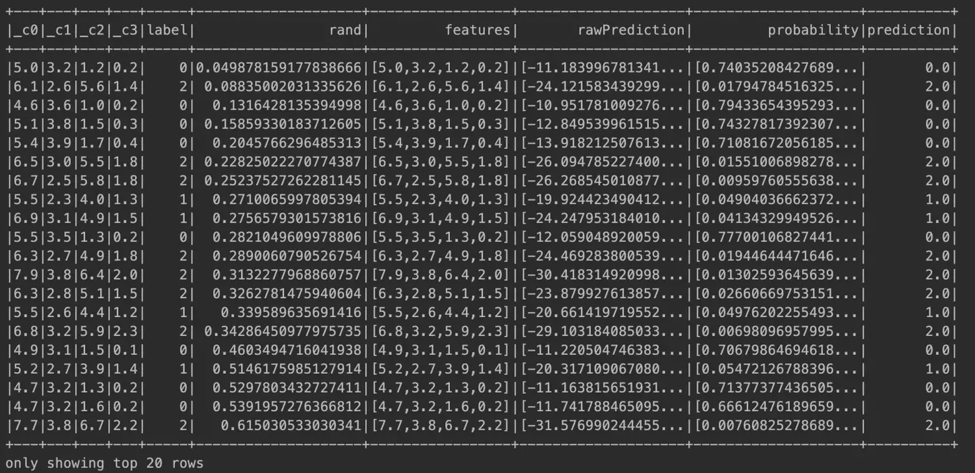 例如,DataFrame可以具有存储文本,特征向量,真实标签和预测的不同列.