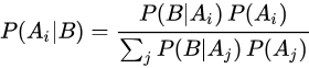 - 在更一般化的情况,假设{Ai}是事件集合里的部分集合,对于任意的Ai,贝氏定理可用下式表示: