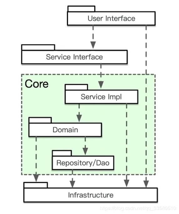 - Infrastructure层主要是业务平台,编程框架,第三方库的封装,基础算法,等等。