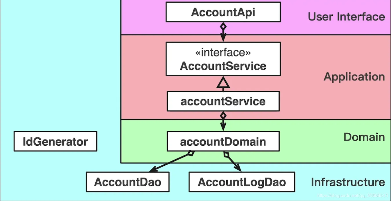 - Domain层主要是领域模型的实现,包括领域对象的确立,这些对象的生命周期管理及关系,领域服务的定义,领域事件的发布,等等。