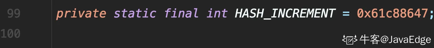 - 连续生成的哈希码之间的差值,关于该值的设定,可参考文章ThreadLocal的hash算法(关于 0x61c88647)
