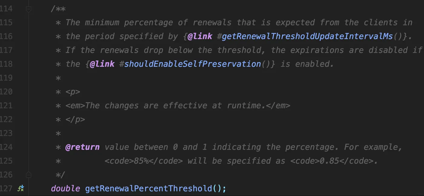 int registrySizeThreshold = (int) (registrySize * serverConfig.getRenewalPercentThreshold());